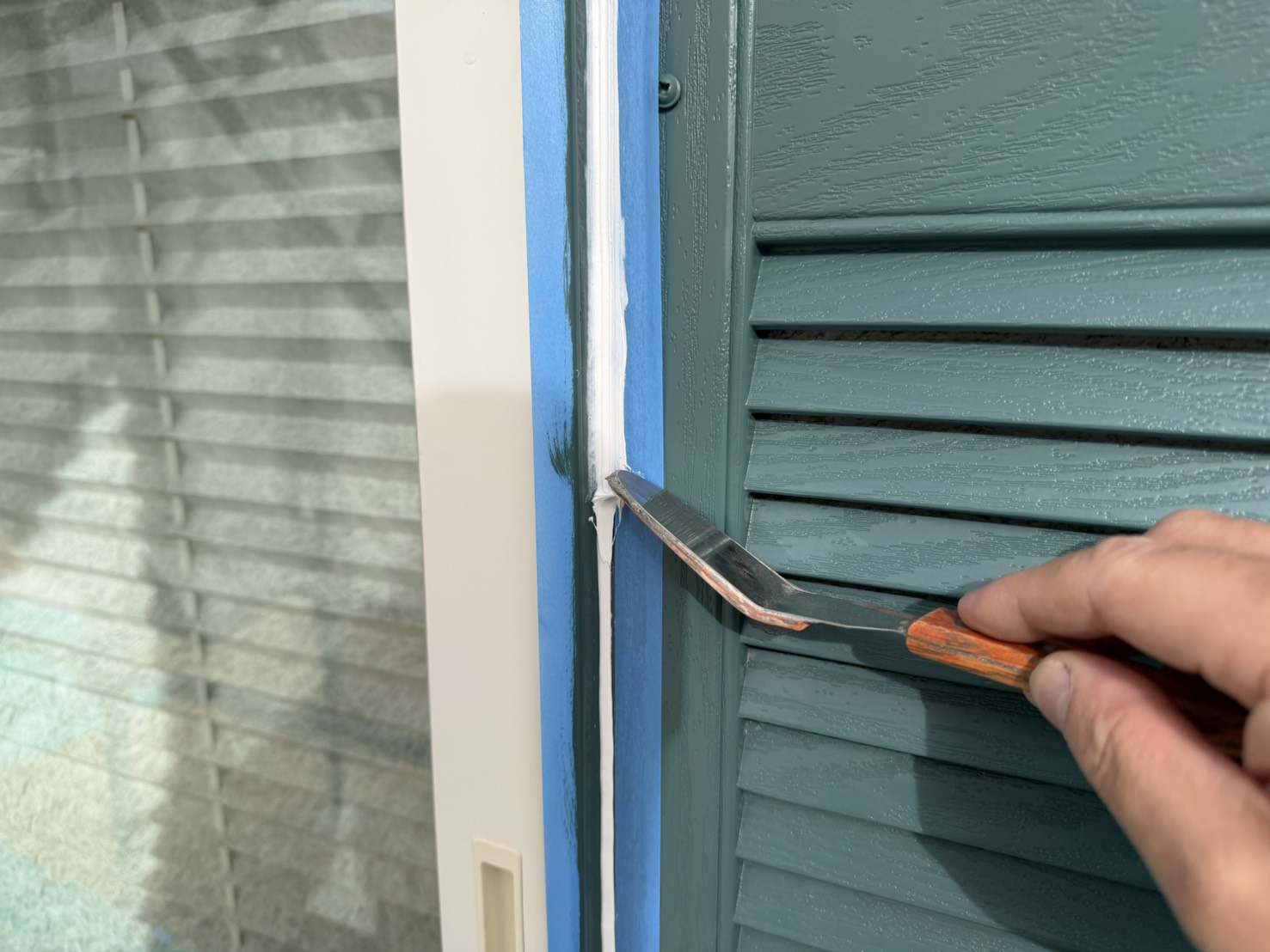 サッシ廻りのコーキングの劣化部分の下地処理。